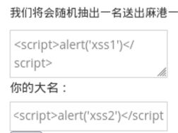 还是采用我们最爱的<script>alert('xss')</script>,由于有两个可注入点,一个用xss1,一个用xss2表示