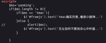 输入yaoming看看源码,是js脚本
