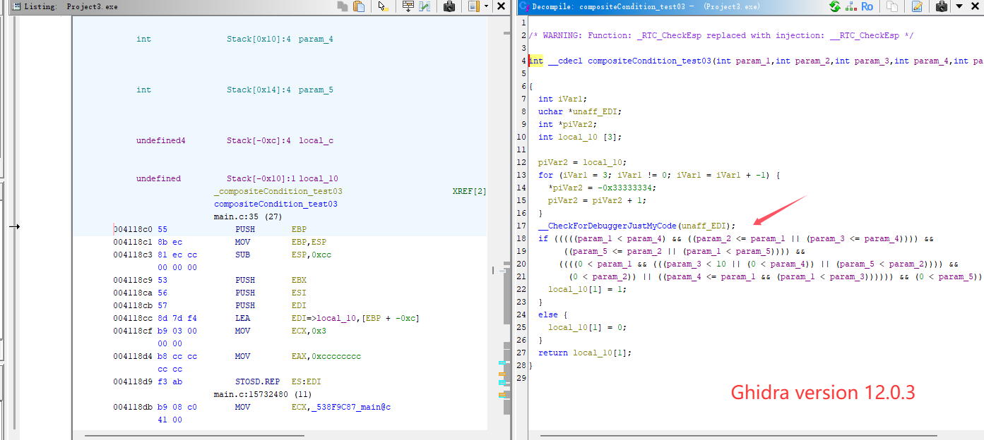 以示例3的 compositeCondition_test03函数为例,对比 IDA、Binary Ninja、Ghidra 的反编译结果: