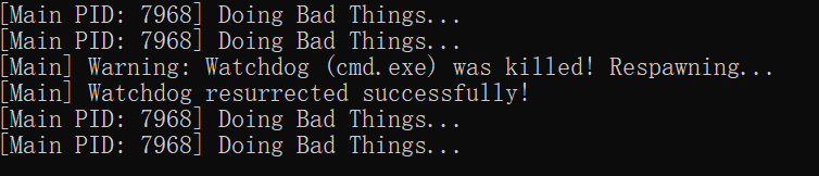 printf("[Main] Warning: Watchdog (cmd.exe) was killed! Respawning...\n");