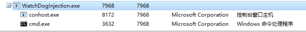 WatchdogInjection.exe 在运行时要立刻判断自己是主进程,还是被注入到cmd.exe 的守护进程