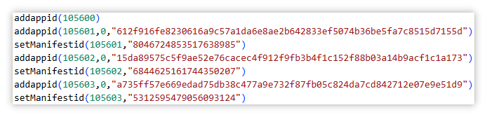 经进一步分析云控配置发现,被攻击的网站其中之一为cool666.top。进一步分析其站点结构后,发现存在一个固定下载模板地址0aaK9s2c8@1M7s2y4Q4x3@1q4Q4x3V1k6Q4x3V1k6Y4j5h3#2W2i4K6u0W2j5$3!0G2L8o6j5$3y4W2)9J5k6i4c8G2M7q4)9J5c8V1N6S2L8h3g2x3K9i4y4@1i4K6u0r3{APPID}.zip,基于该模板,将《泰拉瑞亚》的Steam APPID(105600)代入后,可拼接得到对应下载地址 33bK9s2c8@1M7s2y4Q4x3@1q4Q4x3V1k6Q4x3V1k6Y4j5h3#2W2i4K6u0W2j5$3!0G2L8o6j5$3y4W2)9J5k6i4c8G2M7q4)9J5c8V1N6S2L8h3g2x3K9i4y4@1i4K6u0r3x3e0l9#2y4U0l9H3i4K6u0W2P5X3W2H3,对该压缩包进行分析后发现其中包含Lua脚本。结合以往对Steam入库工具的分析经验,可以判断该脚本即为用于“入库”操作的Lua脚本。由此可进一步认定,被攻击的网站本质上是一个提供Steam入库服务的网站。
