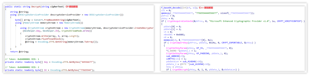 随后通过Base64解码和DES算法配合密钥("44556677")与初始化向量("77665544")实现解密。