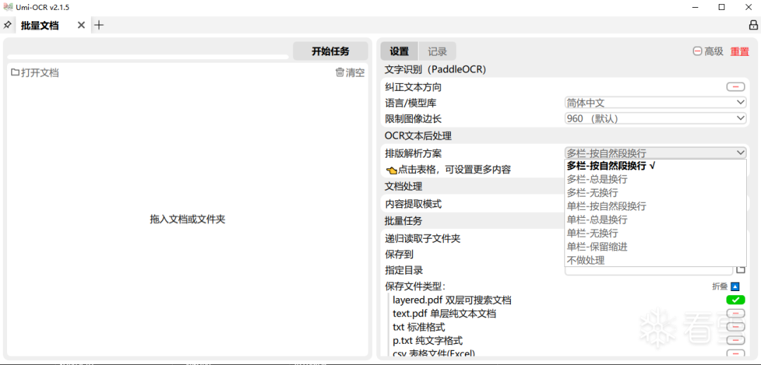 Umi-OCR不仅仅提供基本的文字识别,还针对不同场景提供了智能排版处理选项。