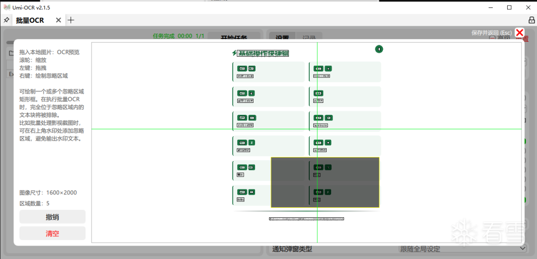 Umi-OCR提供了便捷的截图识别功能,用户可以通过快捷键截取屏幕任意区域,软件即时识别其中的文字。这一功能非常适合从网页、视频或其他不支持文本选择的场景中提取文字。