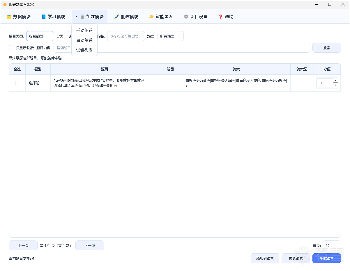 - 组卷测试