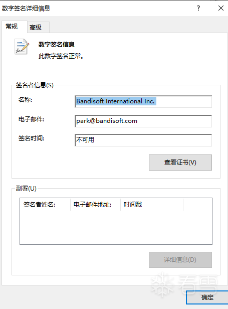 文件自带 Bandisoft International Inc. 的合法数字签名,且签名状态正常