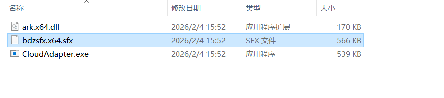 | bdzsfx.x64.sfx | 数据载荷:经过加密的二进制数据,解密后为真实的定制化后门。 | 566 KB |