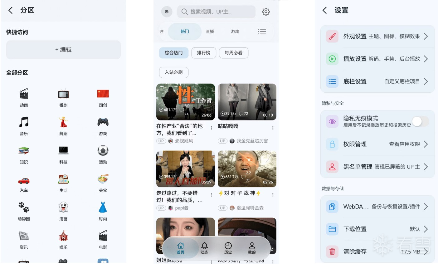 bilipai是一款面向B站内容爱好者的第三方安卓客户端,它有着清新灵动的界面风格和流畅自然的操作体验,能完整同步B站的各类视频资源,包括番剧、动画、知识科普、生活分享等内容类别,用户登录账号后,还可以实时同步自己的关注列表、收藏夹以及观看记录。