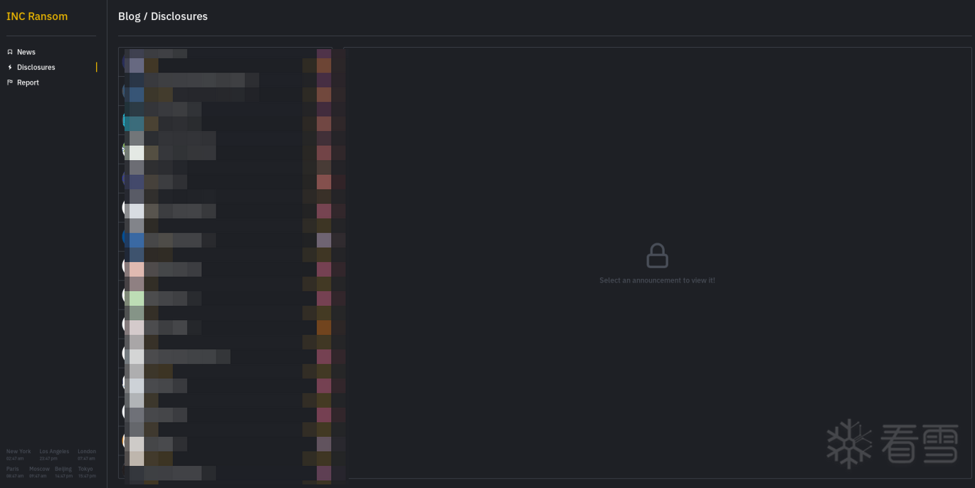 勒索组织数据泄露页面