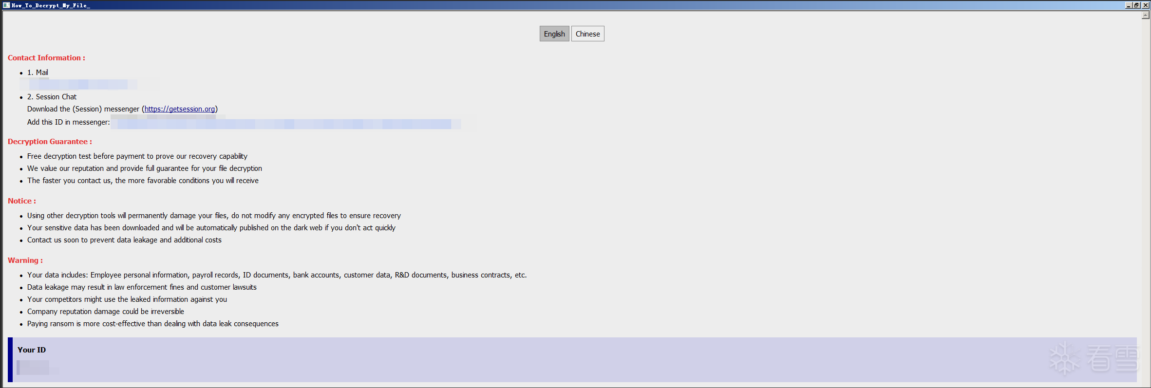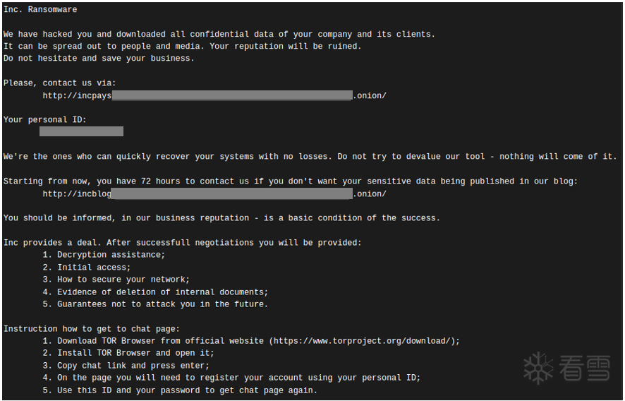 Incransom偏好针对医疗保健、教育、政府及关键制造业等行业,这是一种战略性选择。这些领域持有个人身份信息和受保护健康信息等极具价值的数据,一旦受袭,其社会影响和公众压力将显著放大,迫使受害者尽快支付赎金以恢复服务和信誉。在与受害者沟通时,Incransom常将支付赎金描述为“挽回声誉”的服务。这种措辞是精心设计的心理战术,旨在进一步施加精神压力。