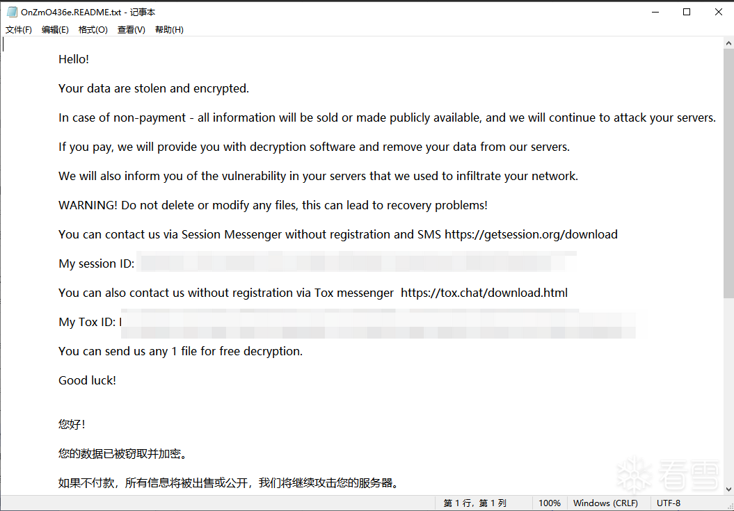 勒索组织聊天服务器