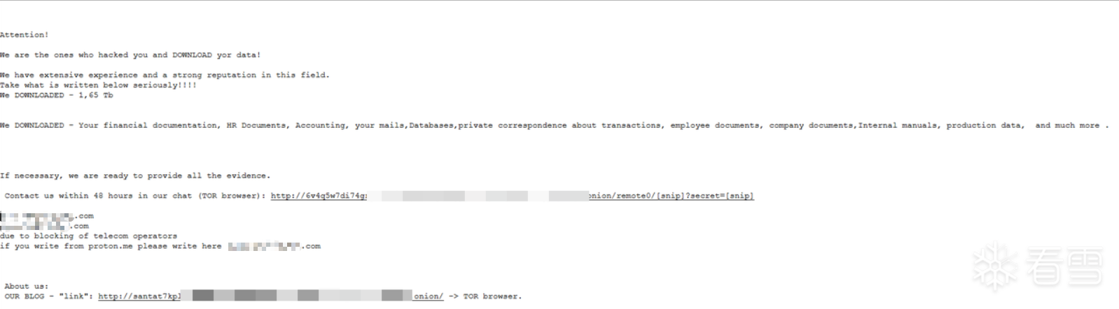 | 勒索暗网泄露页面 | 2025-06-01 | toznnag5o3xxxxxxxxxxxzmz4nmujrjuib4iusad.onion | 失效 |