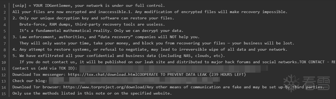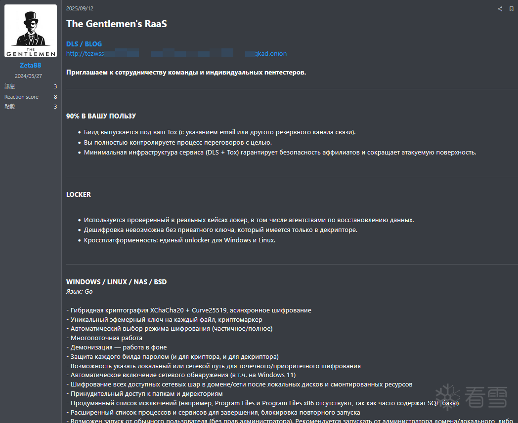 组织特征:该组织展现出极高的职业化水准,拥有完善的暗网泄密站点和基于 TOX 协议的加密沟通渠道 。其核心成员被认为来自于此前被重创的大型勒索家族残余 。