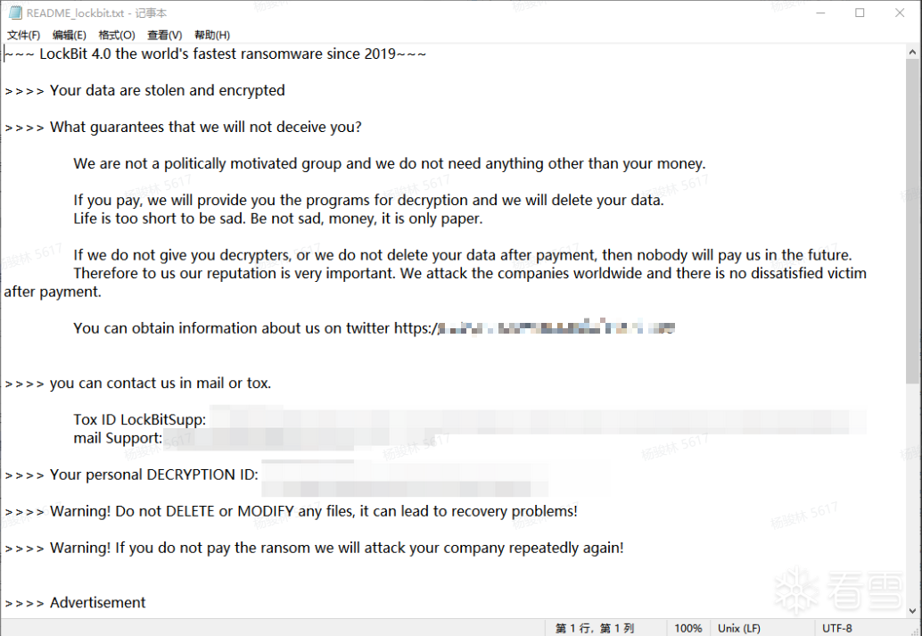 由于 Lockbit 3.0 生成器(Builder)源码泄露,攻击者可自定义勒索信中的联系信息,导致基于该家族源码的变种在全球范围内泛滥。