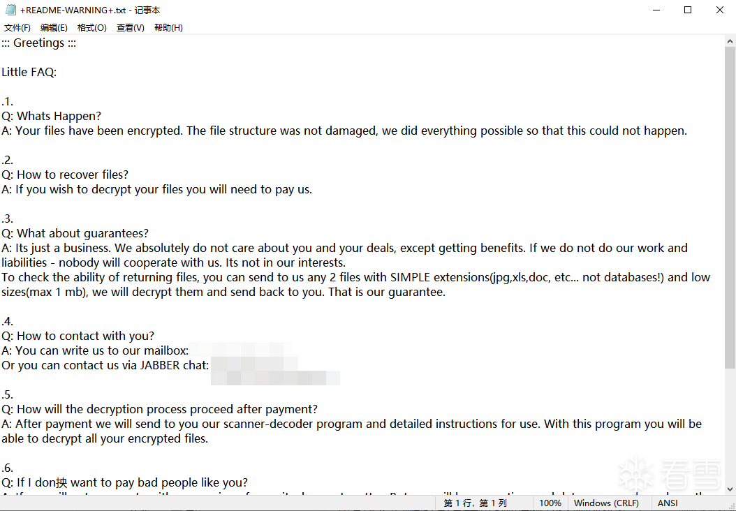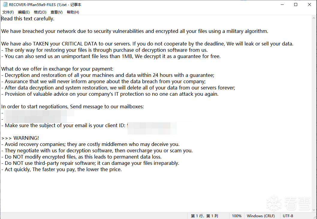 BeijingCrypt勒索家族无暗网界面通过高匿名邮箱与受害者交流
