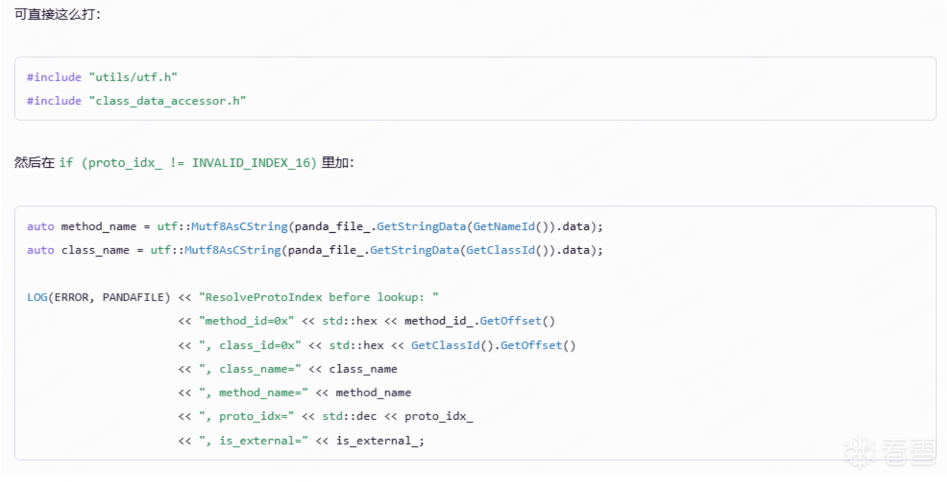 提示词:我需要打印一下日志来判断是哪个method出的问题,帮我确认一下应该在哪儿插日志,并打印所在的类和method |