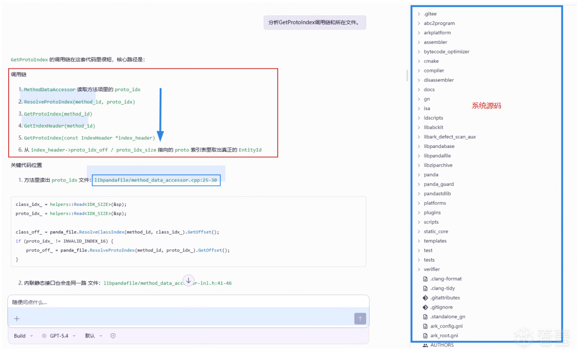 360技术专家换了种思路。为何不基于源码先摸清GetProteIndex的调用逻辑。这点如果用人来分析的话,就会慢很多。看AI是如何进行分析的。