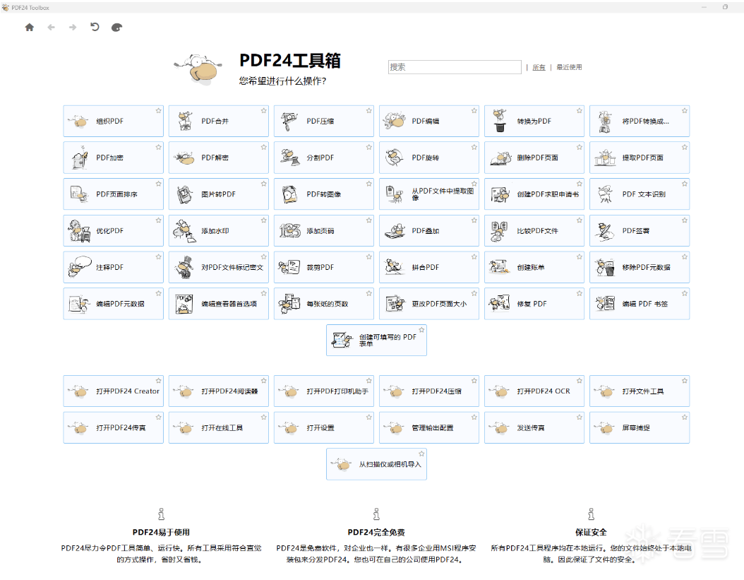 PDF24Creator是一款免费且流行的 PDF 解决方案,具有许多适用于 Windows 的功能。该软件将所有 PDF24 工具作为离线版本提供,因此所有文件都保留在您的 PC 上。MAC 版本不可用。 MAC用户可以使用PDF24在线工具,该工具也是免费的。