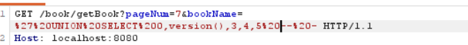 bookName=' UNION SELECT 1,2,3,4,5 -- - 右边的就是我们构造的假查询。