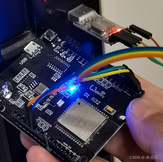 1,连接好USB转TTL模块和WeMosD1R32开发板;