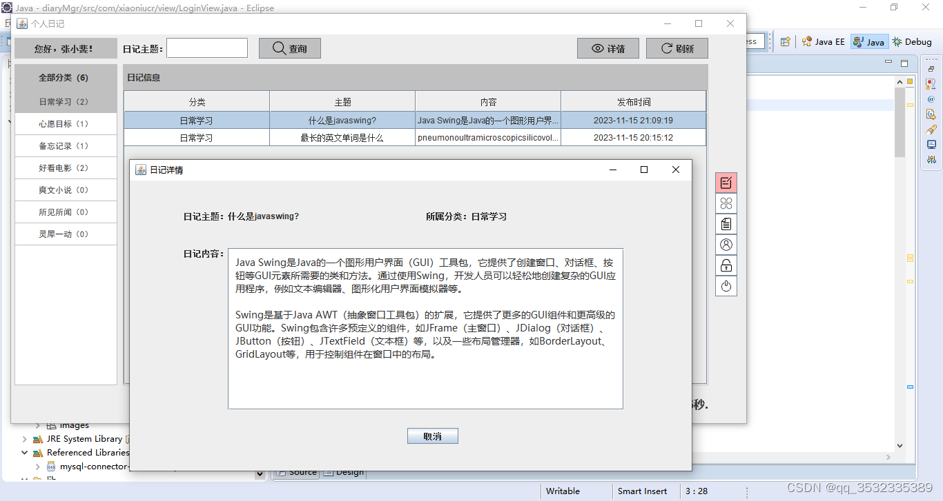 更多【java-【原创】java+swing+mysql个人日记管理系统设计与实现】相关视频教程:www.yxfzedu.com