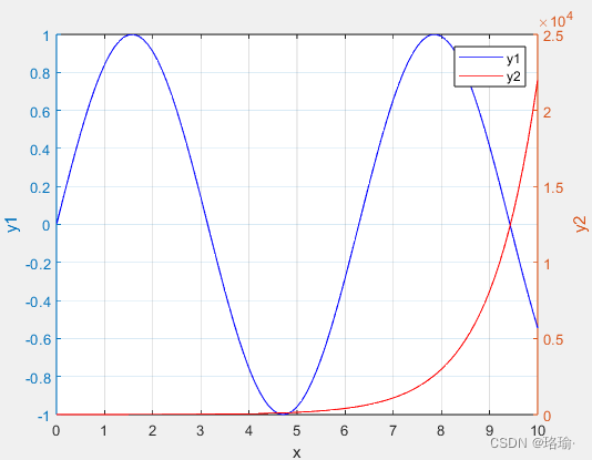 yyaxis left将第一个数据集绘制在左坐标轴上,yyaxis right将第二个数据集绘制在右坐标轴上。