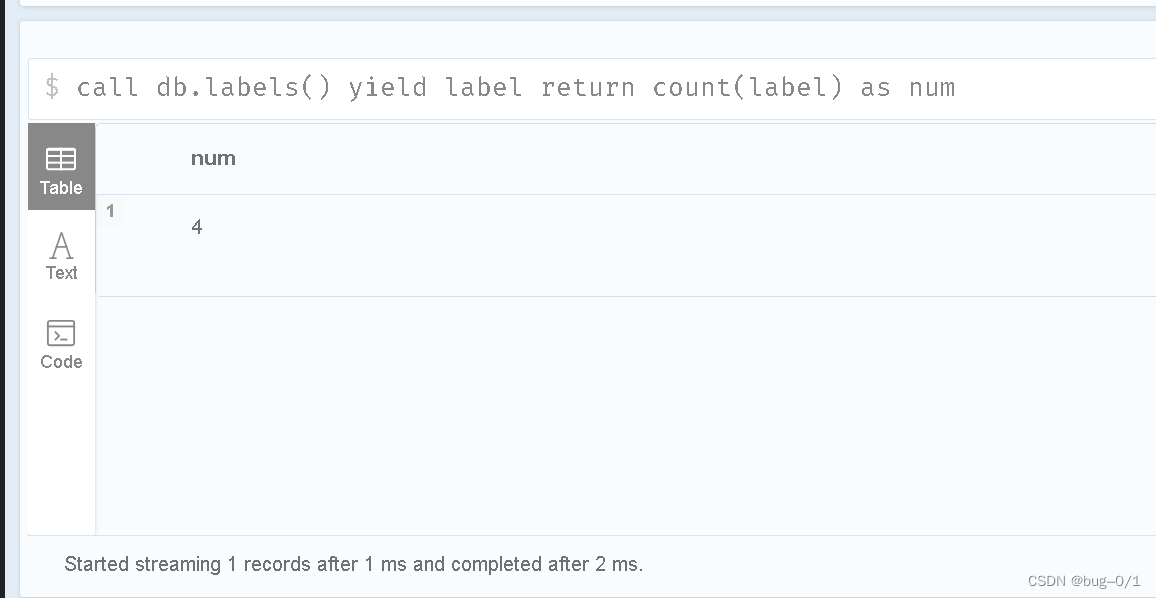 这里是调用数据库中内嵌的过程db.labels()计算数据库中的总标签数。返回结果