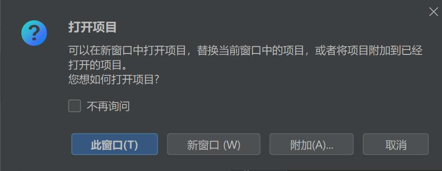当我们第一次用pycharm的时候,新建一个项目,习惯选择此窗口,而且勾选不再询问,这样以后一次只能用pycharm打开一个项目了。在设置里可以修改回来。