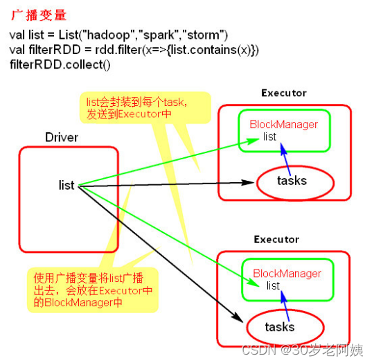 广播变量只能在Driver端定义,不能在Executor端定义。