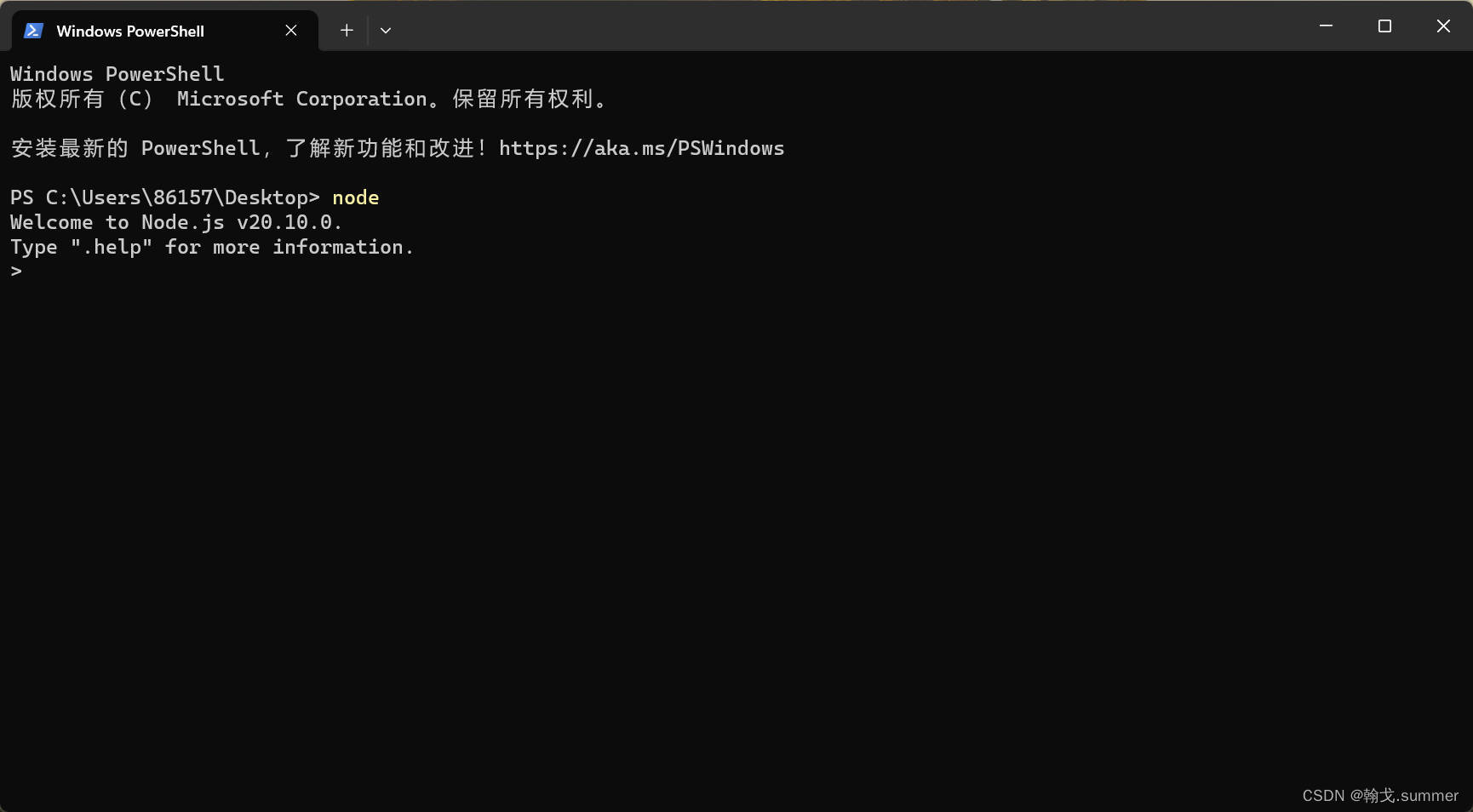 使用node命令检验安装是否成功