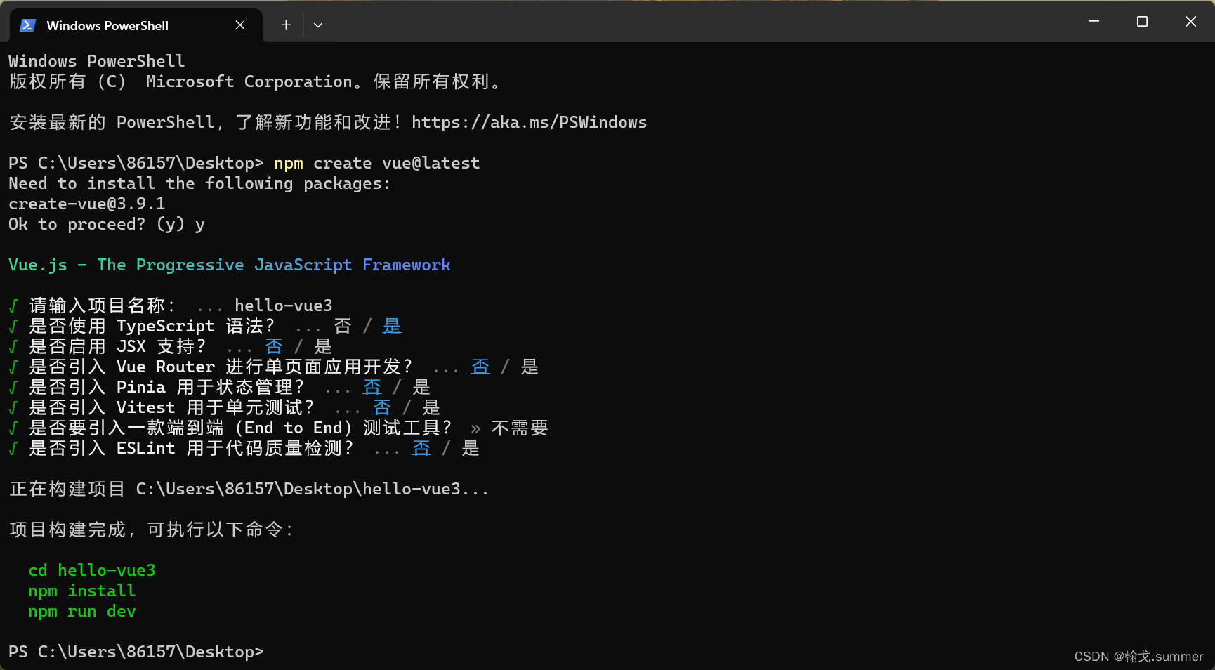 到这里Vue3项目就创建好了,可以在桌面上找到。