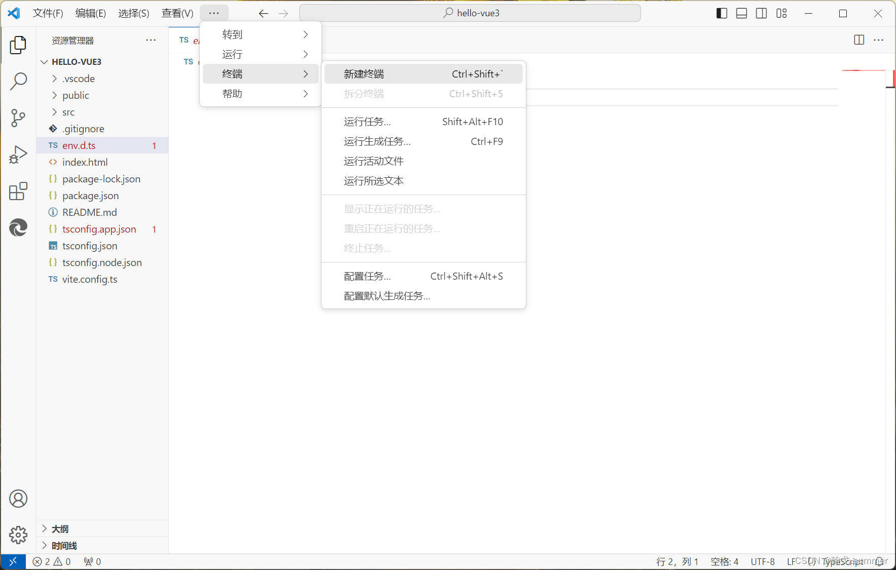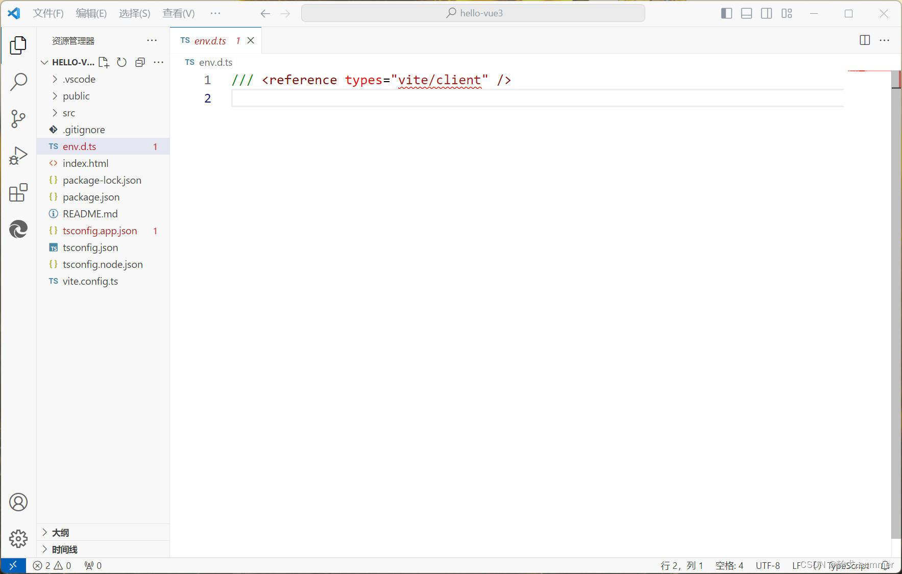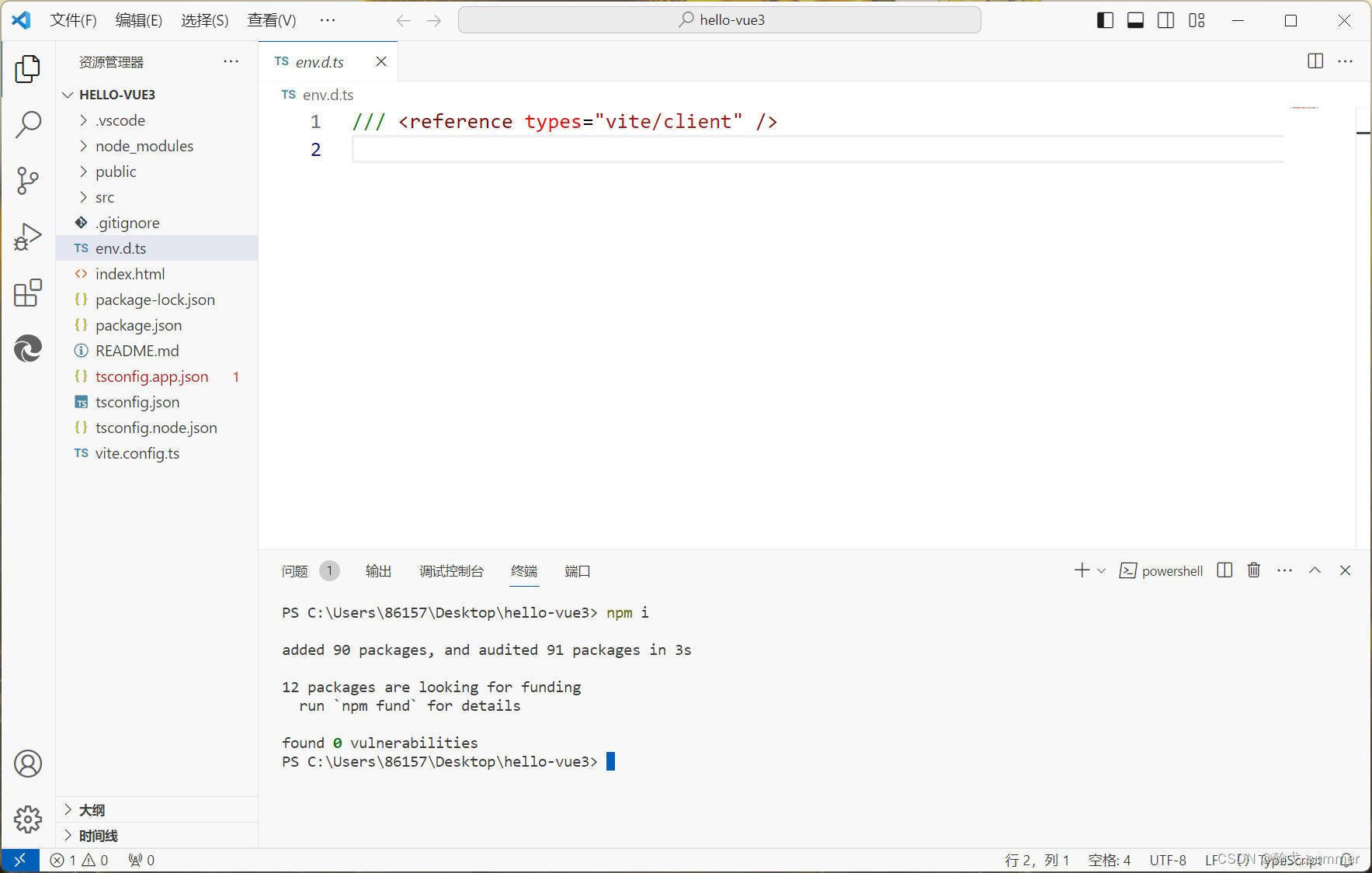 打开env.d.ts文件,发现报错,原因是没有下载依赖。