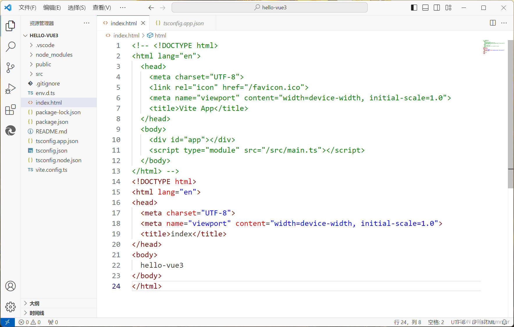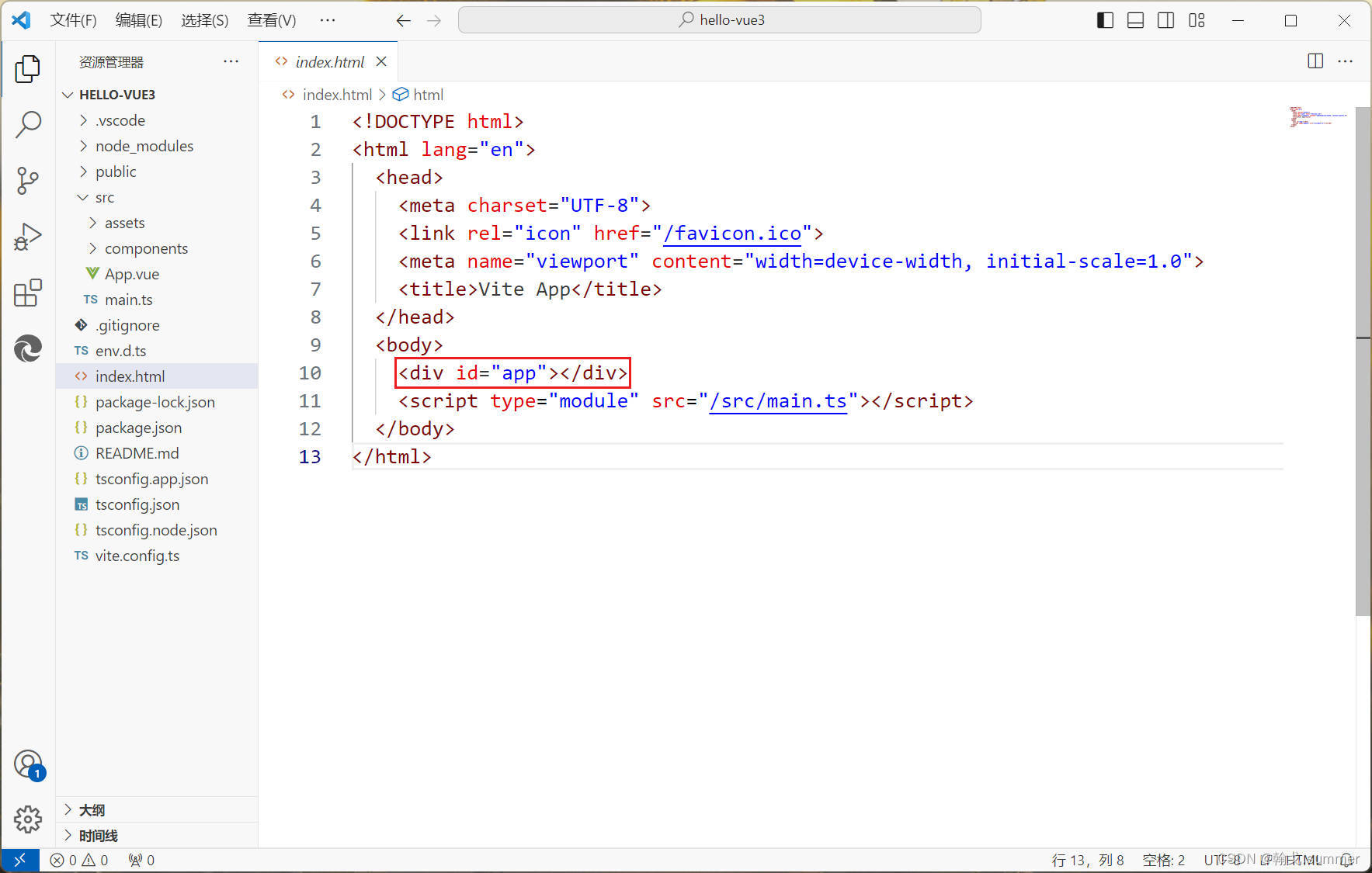 项目中的index.html文件是入口文件,类似于SpringBoot项目中的启动类。