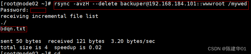 [root@node02 ~]# rsync -avzH --delete backuper@192.168.184.101::wwwroot /mywed