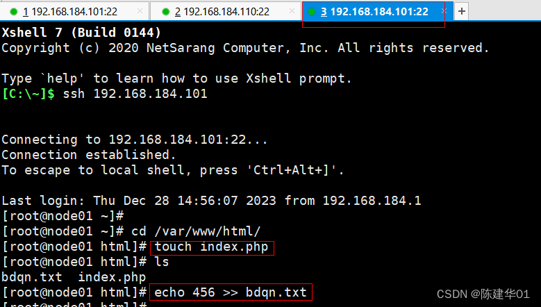 (2)切换到本机的/var/www/html目录,执行增加、删除、修改文件等操作。
