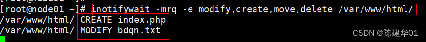 [root@node01 ~]# inotifywait -mrq -e modify,create,move,delete /var/www/html/