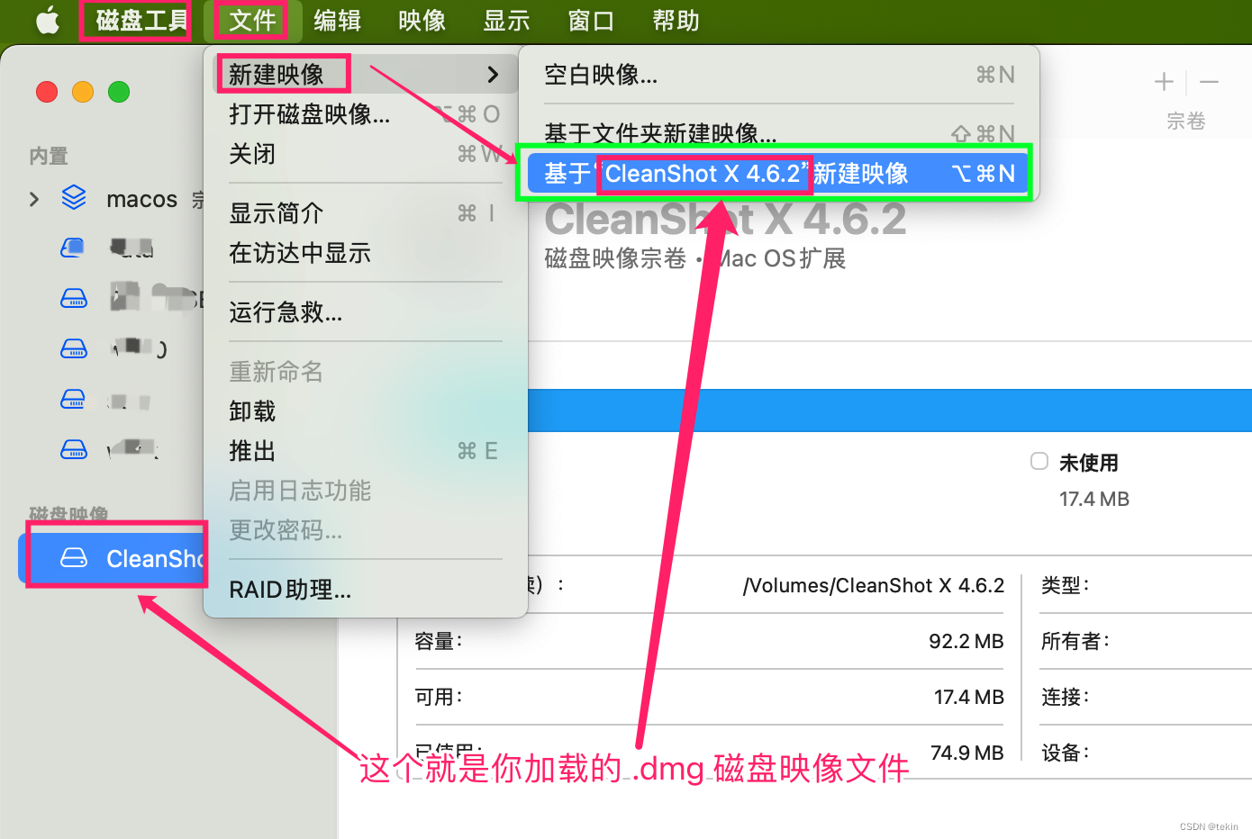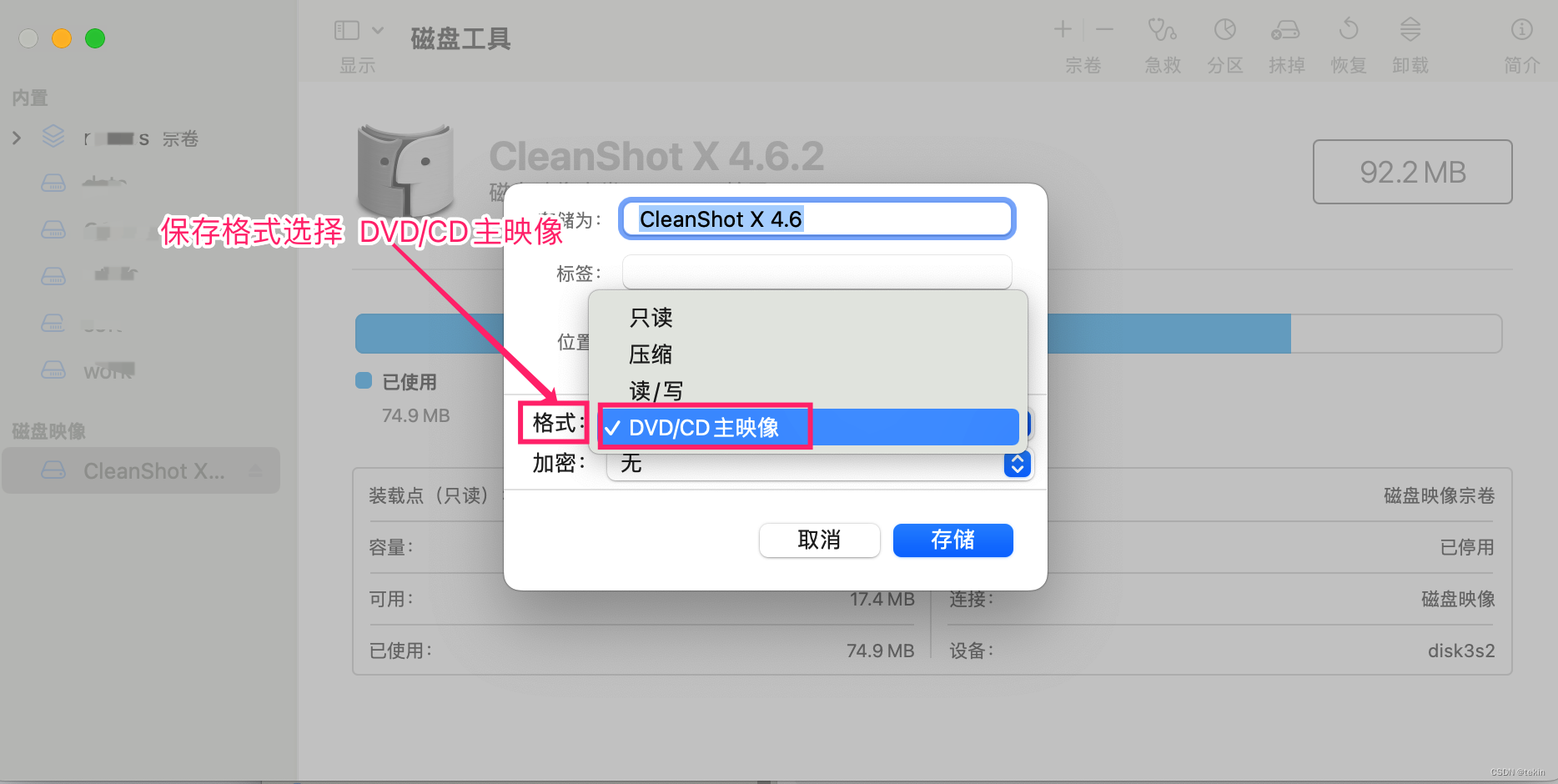 下图以 CleanShot_X_4_6_2.dmg 镜像转换为 CleanShot_X_4_6_2.iso 镜像为例