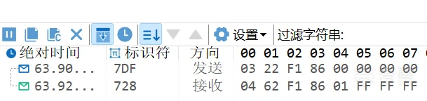 22 服务通过 ID 读取数据,例如读取当前会话状态的 ID 是 F1 86,那么可以使用 7DF # 03 22 F1 86 来读取当前会话,F1 86 后面跟的 01 就是当前会话状态