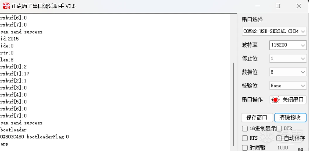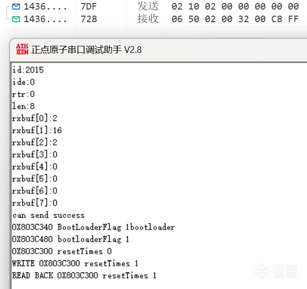 切换到编程会话 7DF # 02 10 02 此时观察串口可以看到进入到了 bootloader 的代码中,一般在这个会话状态进行刷写烧录相关操作