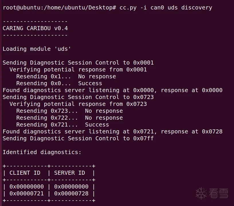 但这玩意都是代码里定义的呀,我们咋知道呢,可以使用 CaringCaribou 这个工具去探测嗷,比如我这里探测的结果是:0x721