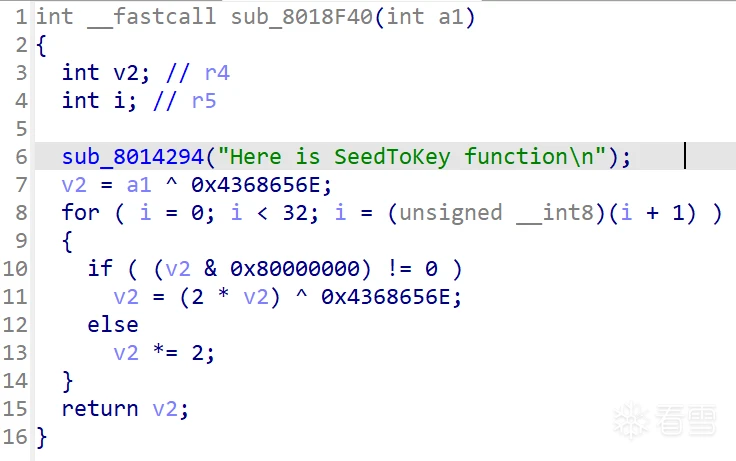 转成伪代码可以看到具体逻辑,a1 就是传进来的 seed,v2 就是计算出来的 key