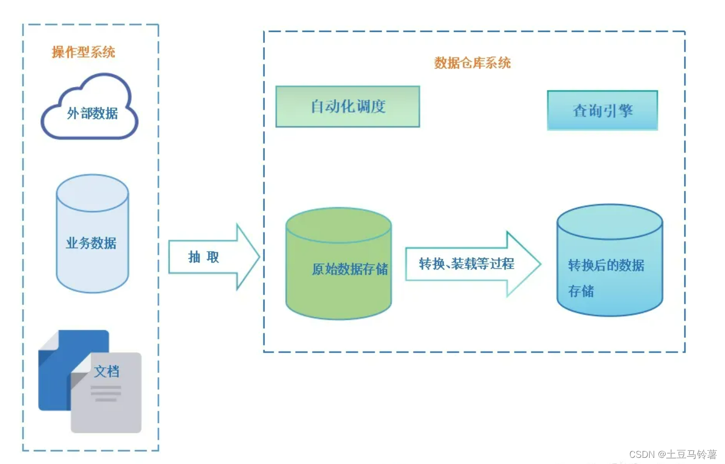 起初,业界数据处理首选方式是数仓架构。通常数据处理的流程是把一些业务数据库,通过ETL的方式加载到Data Warehouse中,再在前端接入一些报表或者BI的工具去展示。