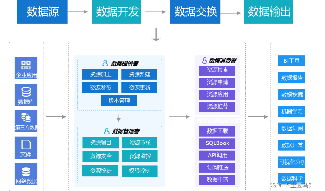数据交换共享平台支撑企业数据共享交换的基础性互联互通平台。促进数据交易,实现企业内外部跨层级、跨系统、跨部门的数据共享和业务协同提供基础支撑。包括:数据资产发布管理、数据资产统计分析、数据资产编目管理、数据资产共享管理、数据资产数据安全管理、数据资产流程与审核管理、数据资产检索管理。