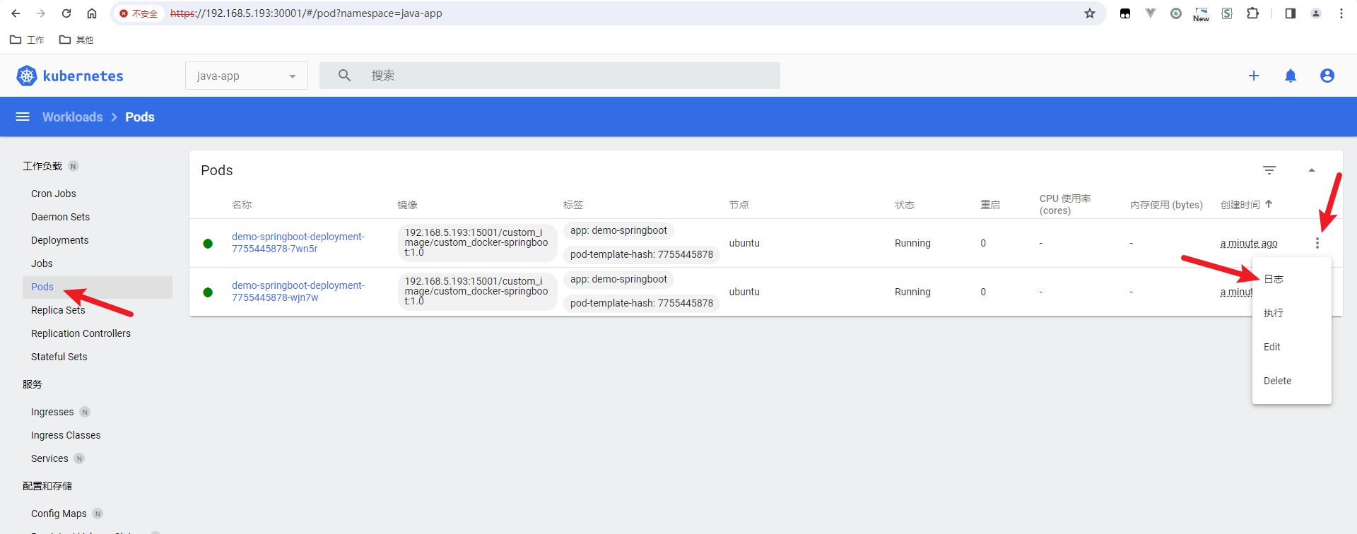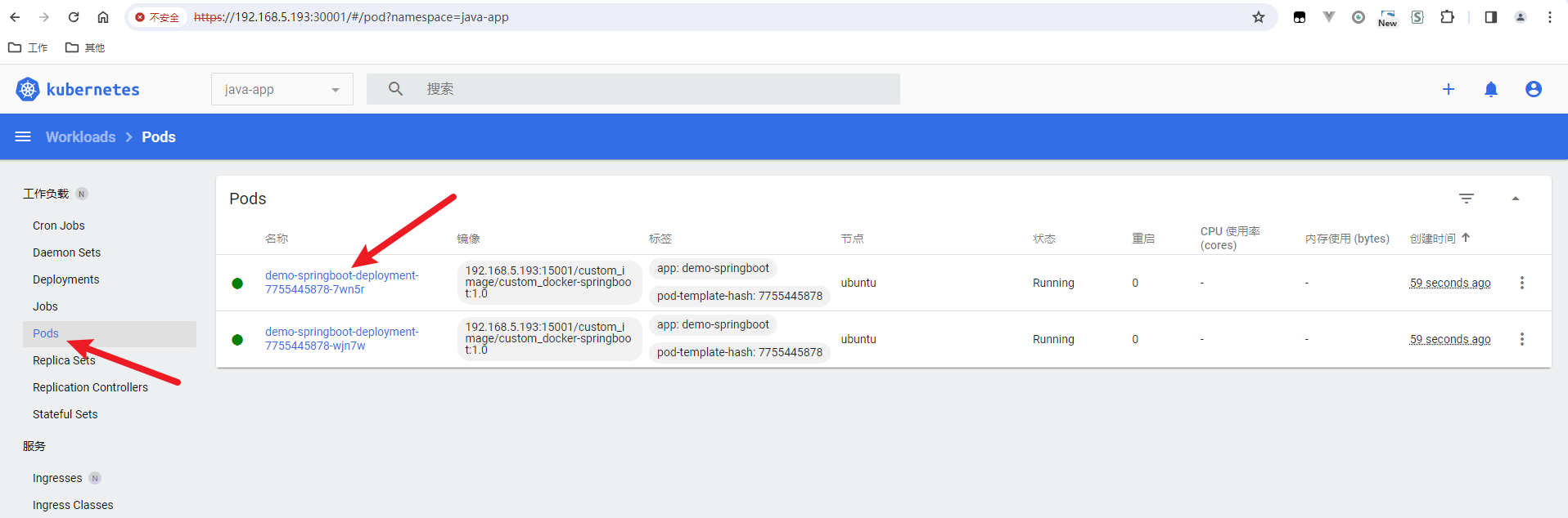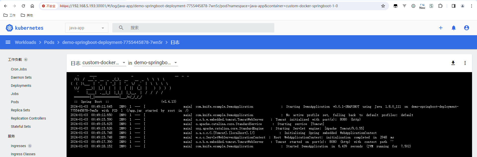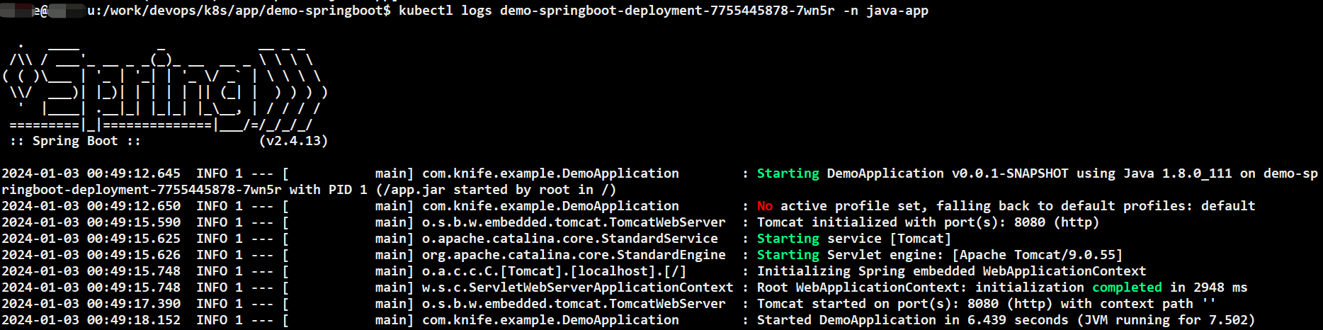 kubectl logs demo-springboot-deployment-7755445878-7wn5r -n java-app