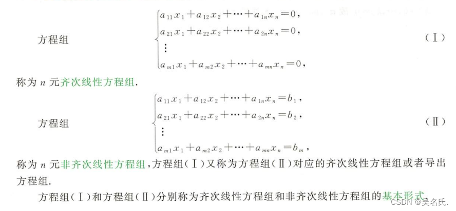 (1)基础解系——设r(A)=r<n,则AX=0 所有解构成的解向量组的极大线性无关组称为方程组AX=0的一个基础解系,当r(A)=r时,AX=0的基础解系所含的线性无关的解向量的个数为n-r个