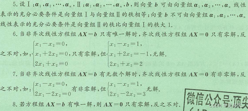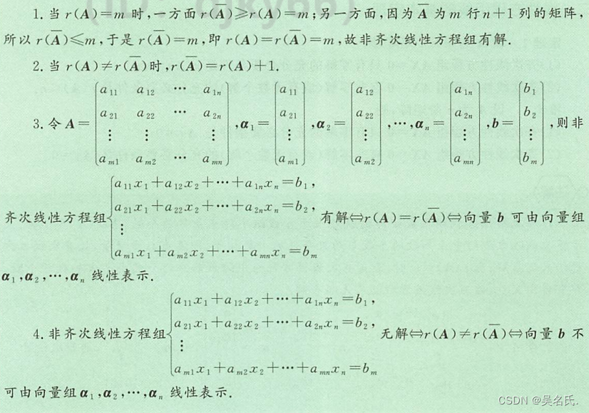 (2)非齐次线性方程组AX=b 无解的充分必要条件是r(A增)≠r(A)