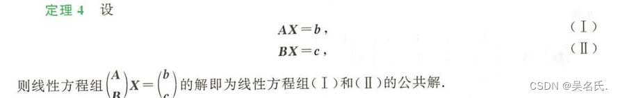定理2 设A为mxn矩阵,增广矩阵A增=(A:b),则