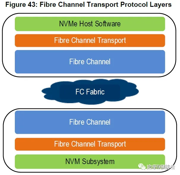 与之前的1.0版一样,NVMe over FC protocol (FC-NVMe) 在新规范里的篇幅还是一点点,却仍被排在3种传输协议层的头一个。原因不难想到——那就是光纤通道(Fibre Channel)存储网络的已有投资、用户群,包括SAN交换机和HBA卡等,以及相对更早、更成熟的应用,比如Dell EMC PowerMax等全闪存阵列。